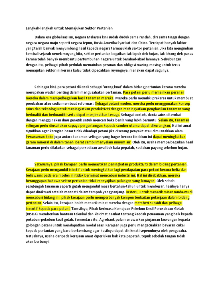 Langkah Langkah Untuk Memajukan Sektor Pertanian Di Negara Kita Karangan Langkah Memajukan Ekonomi Negara Di Negara Membangun Seperti Malaysia Sektor Pertanian Menyumbang 50 Peratus Peluang Seperti Yang Kita Sedia Maklum