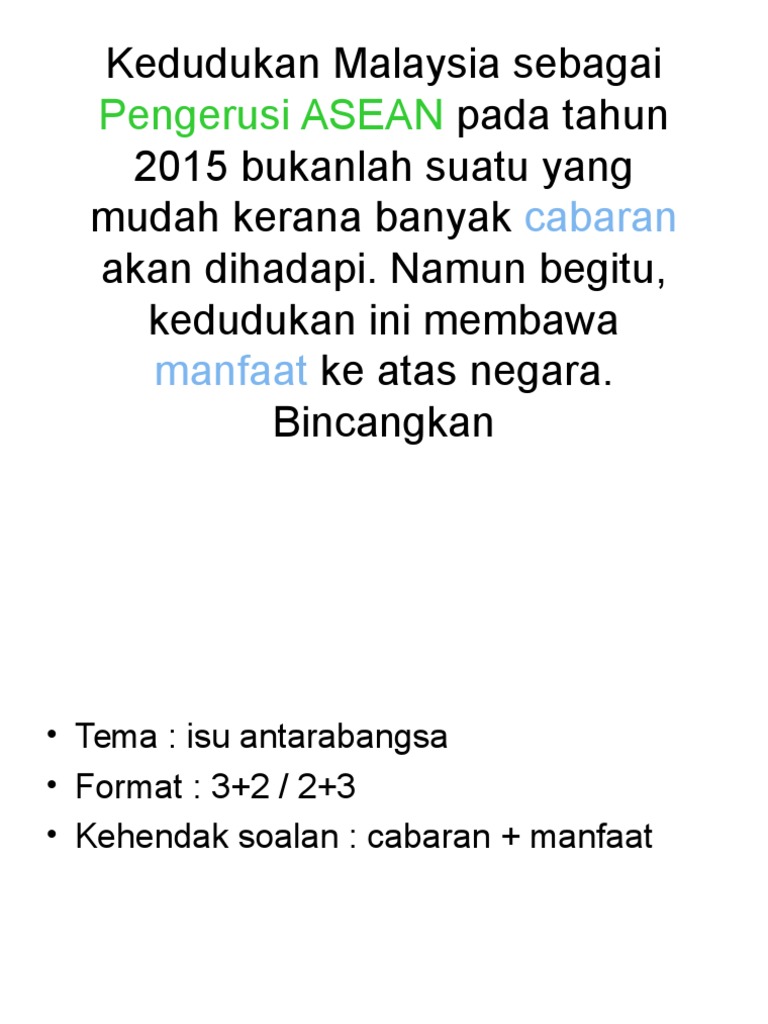 Kedudukan Malaysia Sebagai Pengerusi Asean Pada Tahun 2015 Bukanlah Suatu Yang Mudah Kerana Banyak C