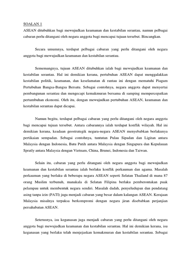 I dan IV C. Dato Hj Suhaime Mahbar Timbalan Ketua Pengarah Perkhidmatan Awam Pembangunan JPA. Yang manakah cabaran yang dihadapi oleh Pertubuhan Negara-Negara Asia Tenggara ASEAN dalam menegakkan keamanan dan kestabilan politik serantau.