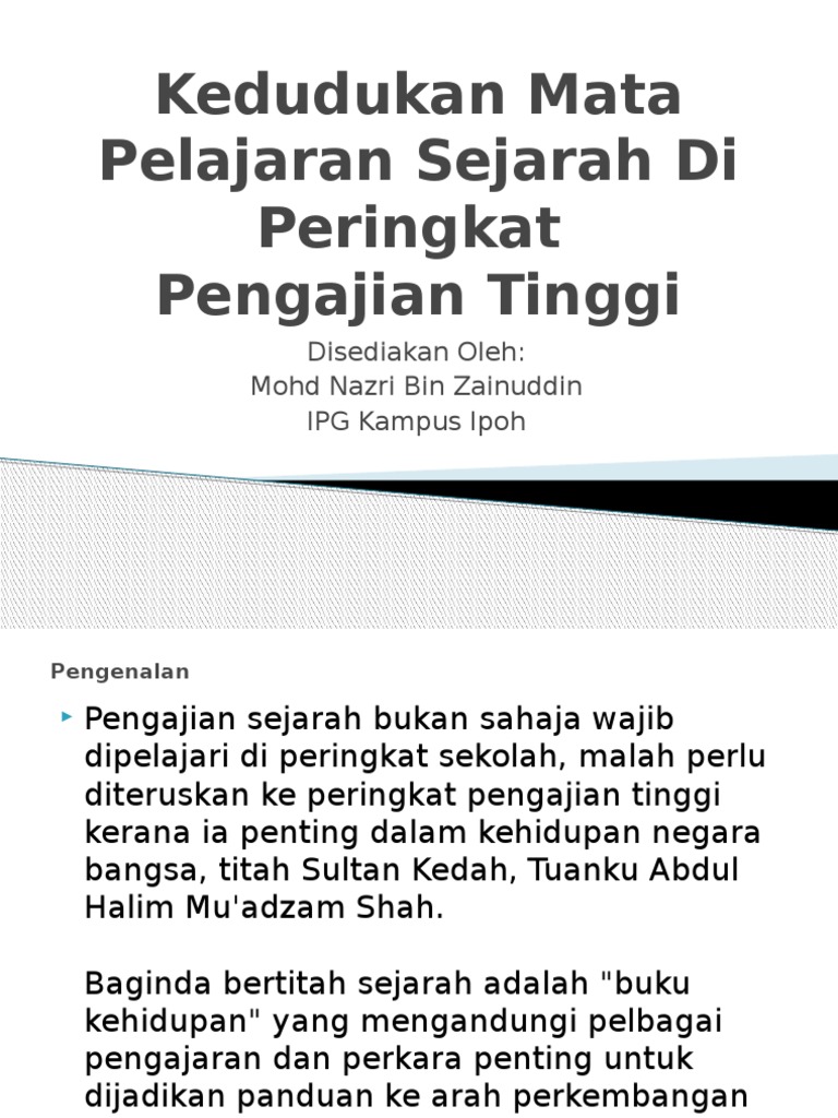Kedudukan Mata Pelajaran Sejarah Di Peringkat Ipt