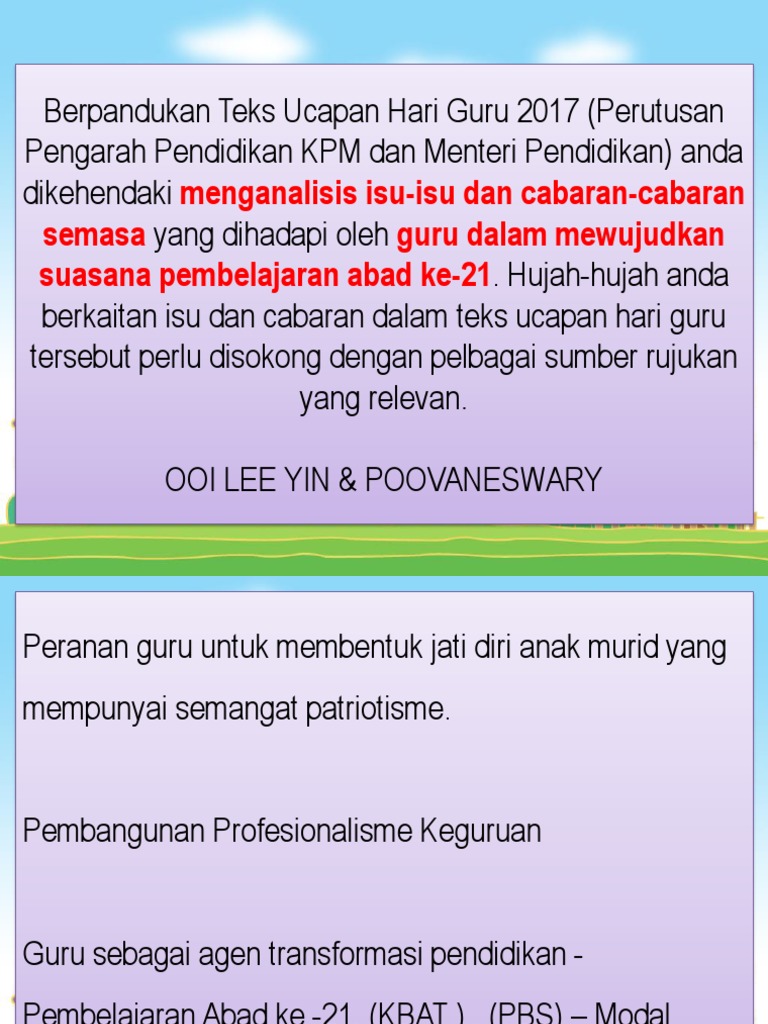 ISU DAN CABARAN 1. Berdasarkan artikel Cabaran Profesion Keguruan oleh Rizuan Khamis dalam Dewan Masyarakat Mei 2012 memetik kenyataan Mantan Ketua Pengarah Pelajaran Datuk Dr. 24032017 Cabaran Menjadi Guru Abad 21 Tanpa perlu kita nafikan lagi pada era teknologi digital abad ke-21 ini merupakan suatu era perubahan dan juga inovasi.