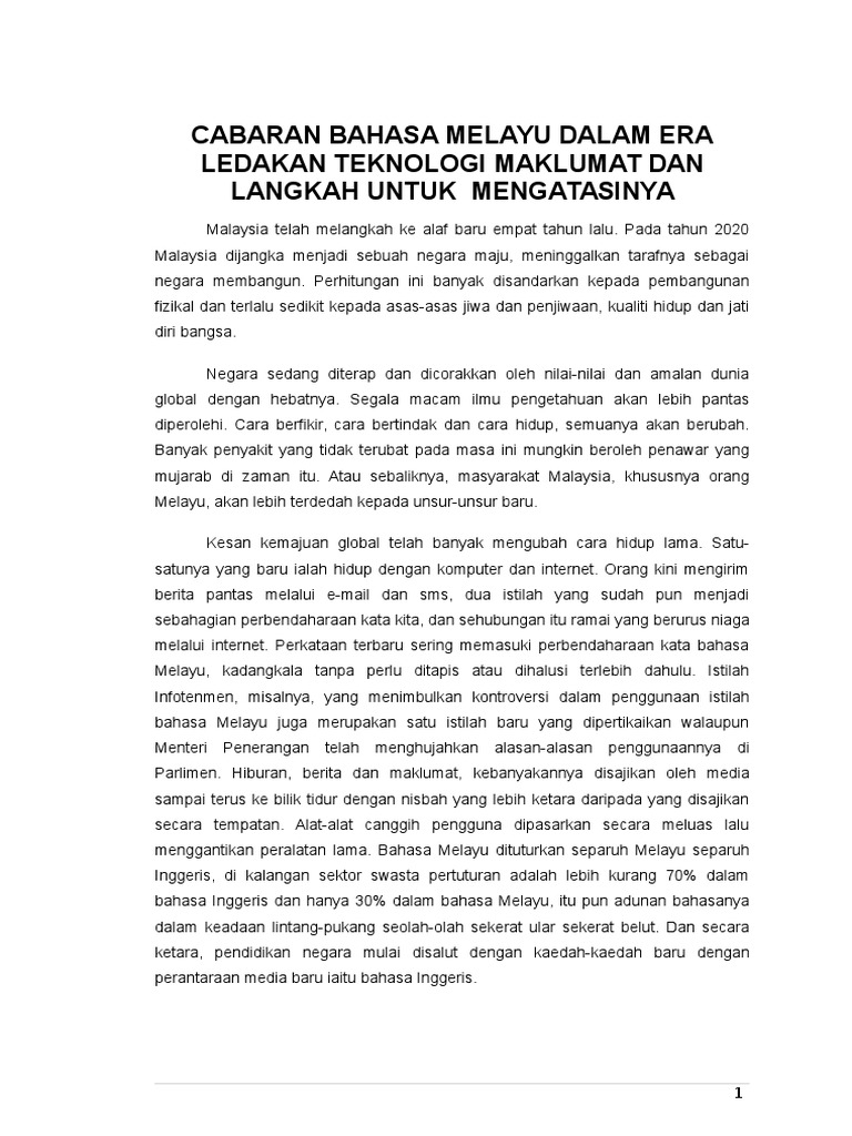 Cabaran Bahasa Melayu Dalam Era Ledakan Teknologi Maklumat Dan Langkah Untuk Mengatasinya