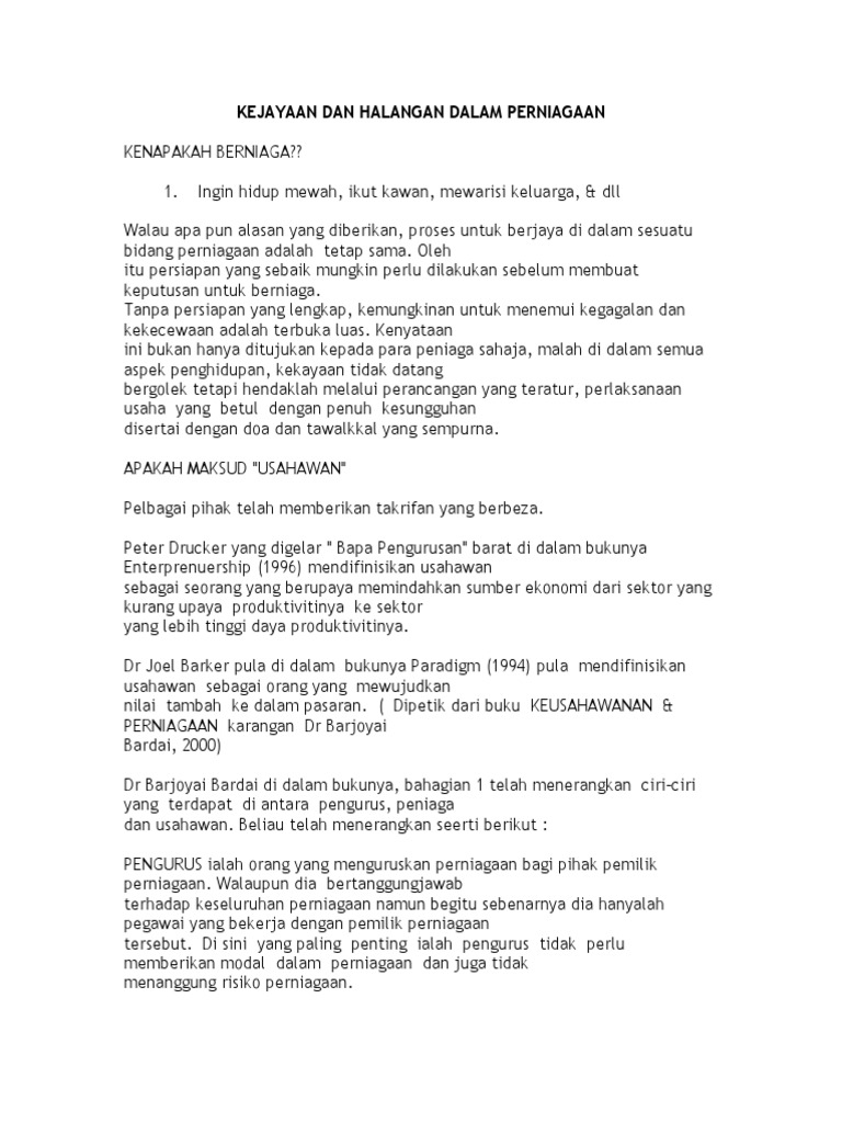 Kejayaan Dan Halangan Dalam Perniagaan