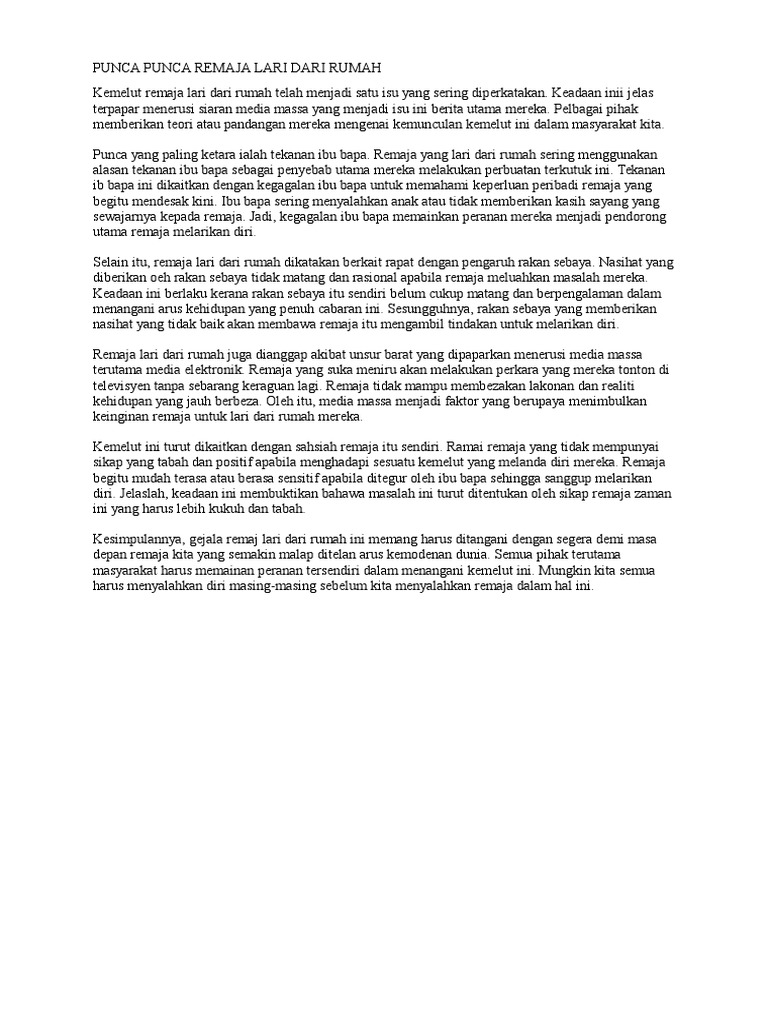 Punca Punca Remaja Lari Dari Rumah