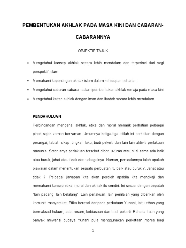 Pembentukan Akhlak Pada Masa Kini Dan Cabaran