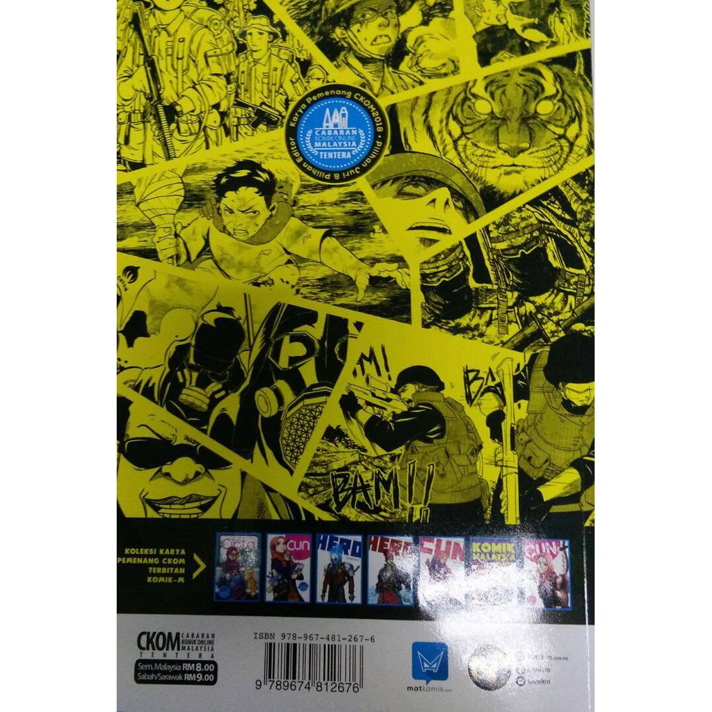 Diterbitkan dengan istimewa secara berkembar CKOM. Antologi Komik-M yang menampilkan karya-karya pilihan juri dan pilihan editor daripada peraduan Cabaran Komik Online Malaysia CKOM2018 dengan tema tentera. Web Portal Komik Online Malaysia - Sebuah platform komik percuma untuk pengkarya komik malaysia sama ada amatur atau profesional berkongsi cerita dalam bentuk komik dari pelbagai genre.