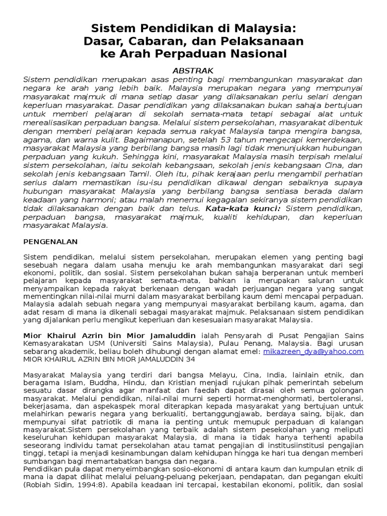 Cabaran Sistem Pendidikan Di Malaysia Pdf