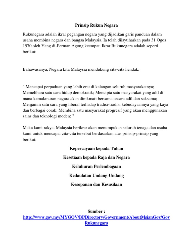 Prinsip Rukun Negara Rukunegara Adalah Ikrar Pegangan Negara Yang Dijadikan Garis Panduan Dalam Usaha Membina