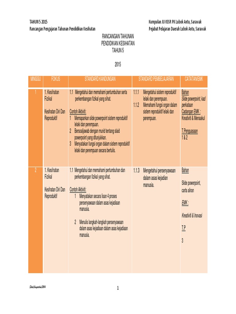 Rpt Pendidikan Kesihatan Tahun 5 Sumber Pendidikan Rpt Pk Thn 5 2015