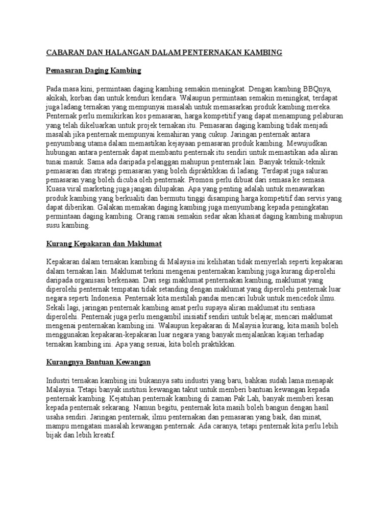 Cabaran Dan Halangan Dalam Penternakan Kambing
