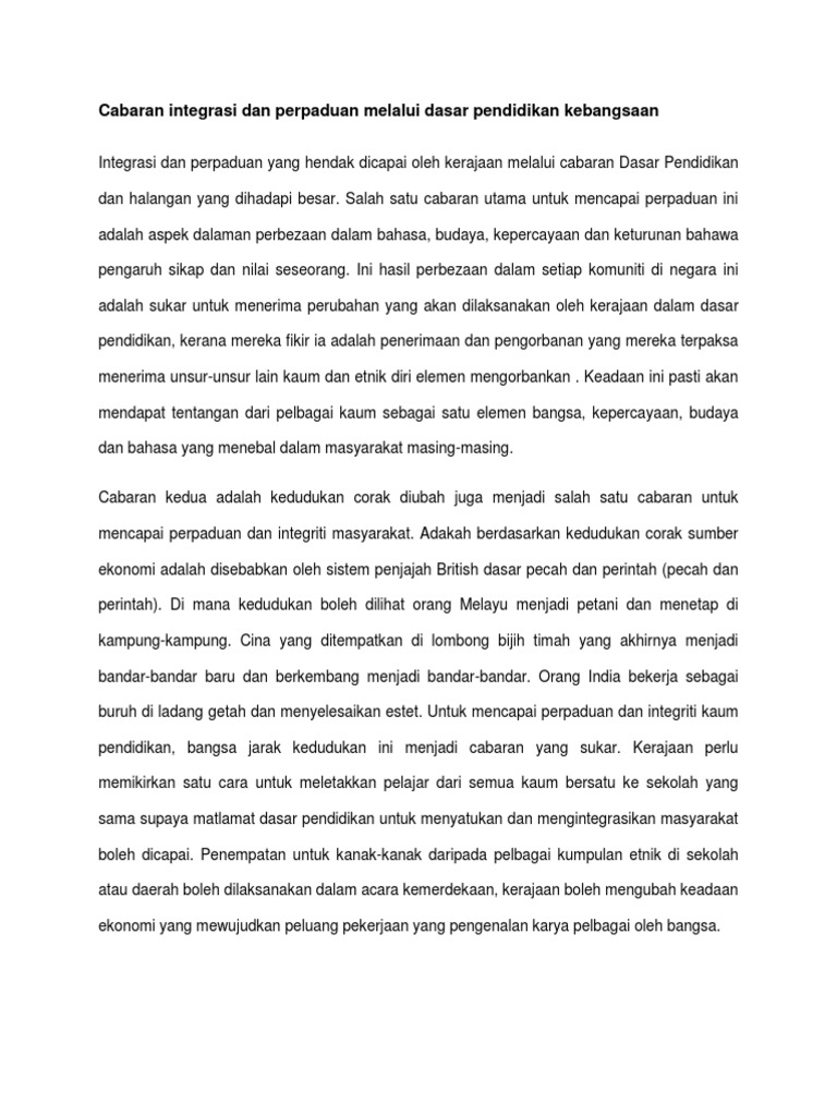 Cabaran Memupuk Perpaduan Kaum Cabaran Cabaran Dalam Merealisasikan Keharmonian Hubungan Kaum Di Malaysia Demi Menyatupadukan Sebuah Negara Yang Course Hero
