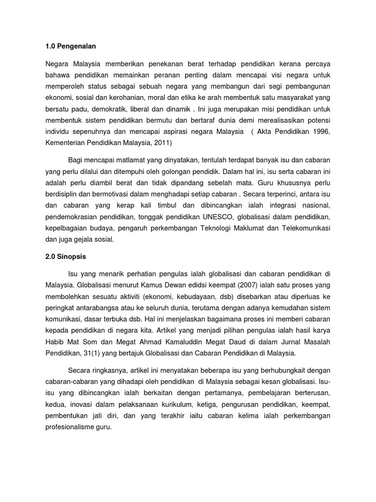 Cabaran Semasa Globalisasi Dalam Pendidikan
