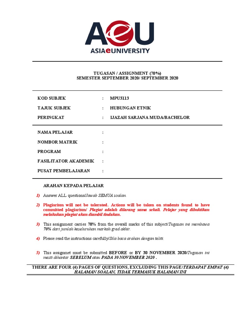 Mpu3113 Hubungan Etnik Assignment Sept20 Learning