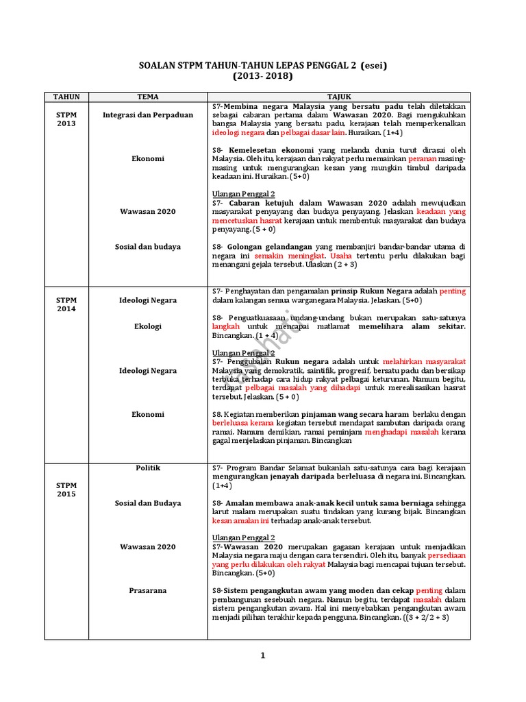 9 Modul Esei Stpm Rukun Negara Modul Esei Soalan Stpm 2013 2018 Tema Rukun Negara Soalan 1 Edit Tajuk Esei Stpm 2014 No 7 Penghayatan Dan Course Hero
